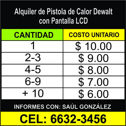 - Para informes contacte a Saúl González al celular 6632.3456.