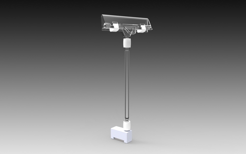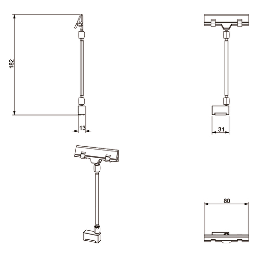 Es una base imán unida a un palito para darle altura, mas una horquilla en su punta, que le permite usarlo para colocarlo sobre una superficie plana e introducir un cartón en la horquilla superior con nombre o precio del producto.