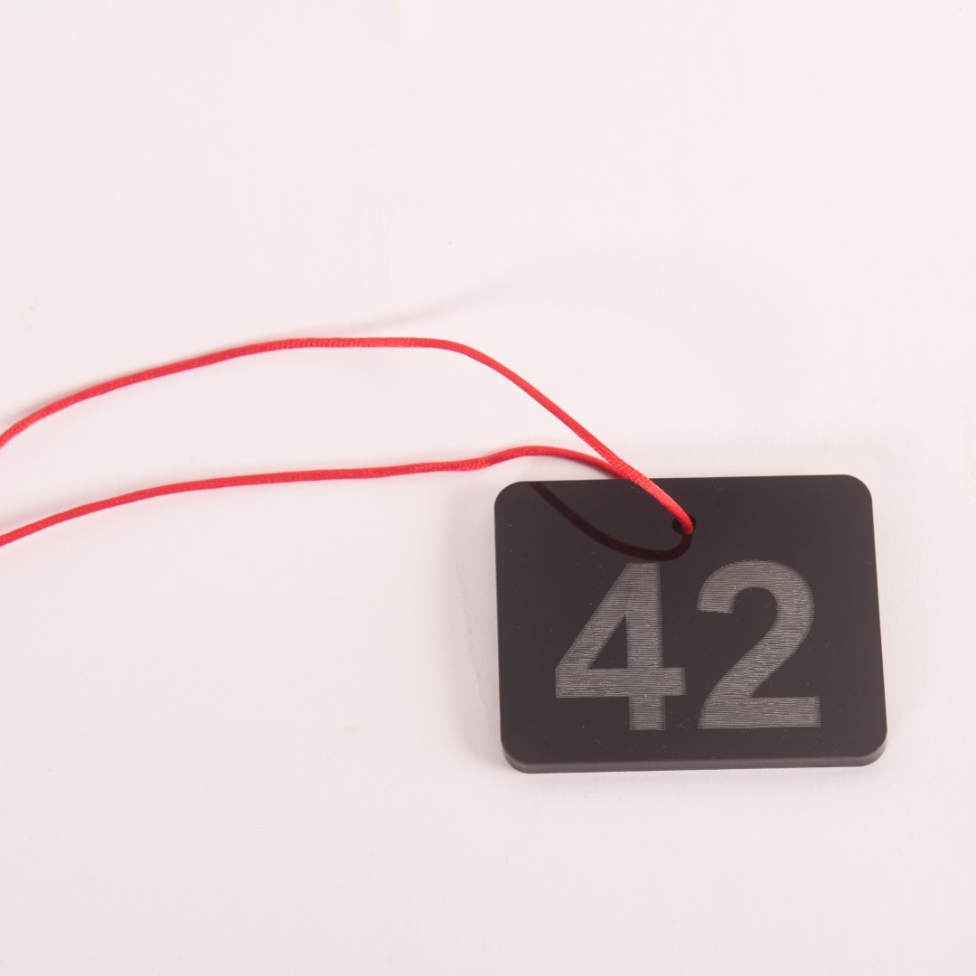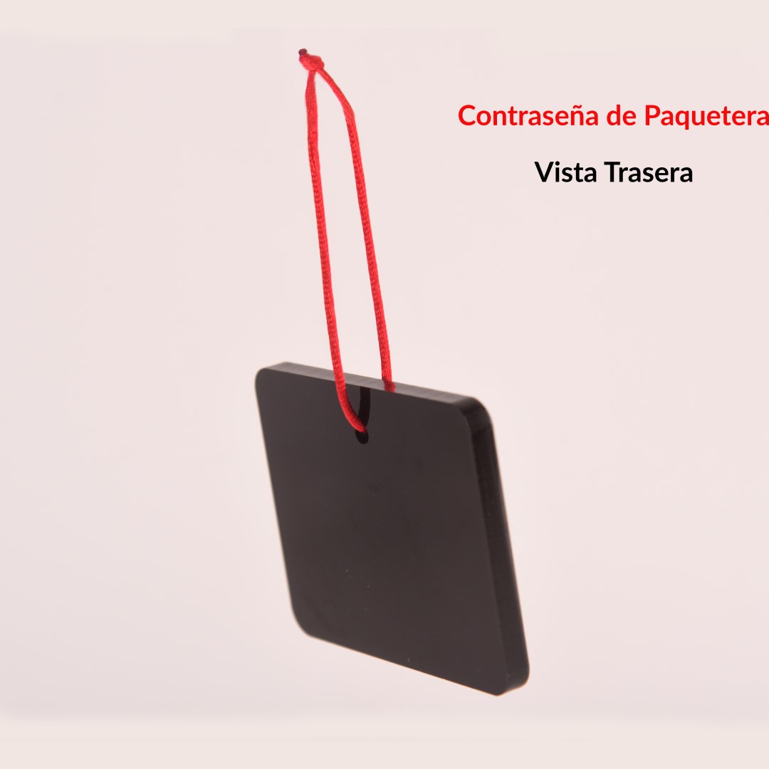 - Las contraseñas de paquetera llevan un número grabado sobre el acrílico y un hilo para que el cliente se la pueda colgar de su muñeca.