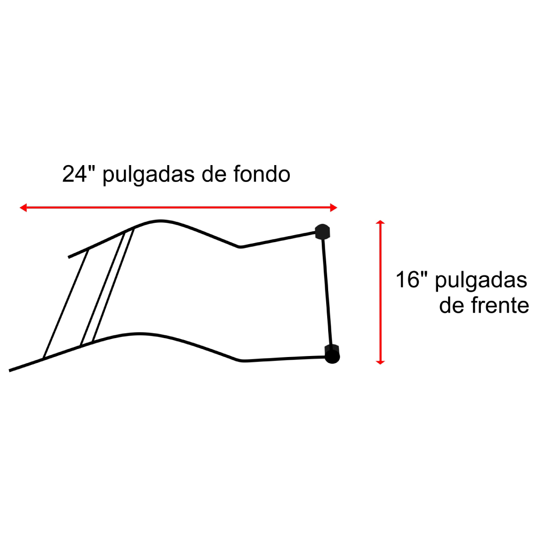 Medidas: 16″ pulgadas de frente x 24″ pulgadas de fondo; pueden colocarse bolsas plásticas de hasta 14″ pulgadas.