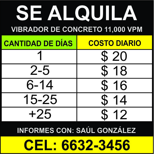 • Para informes y alquilar equipos, contacte a Saúl González al celular 6632.3456.